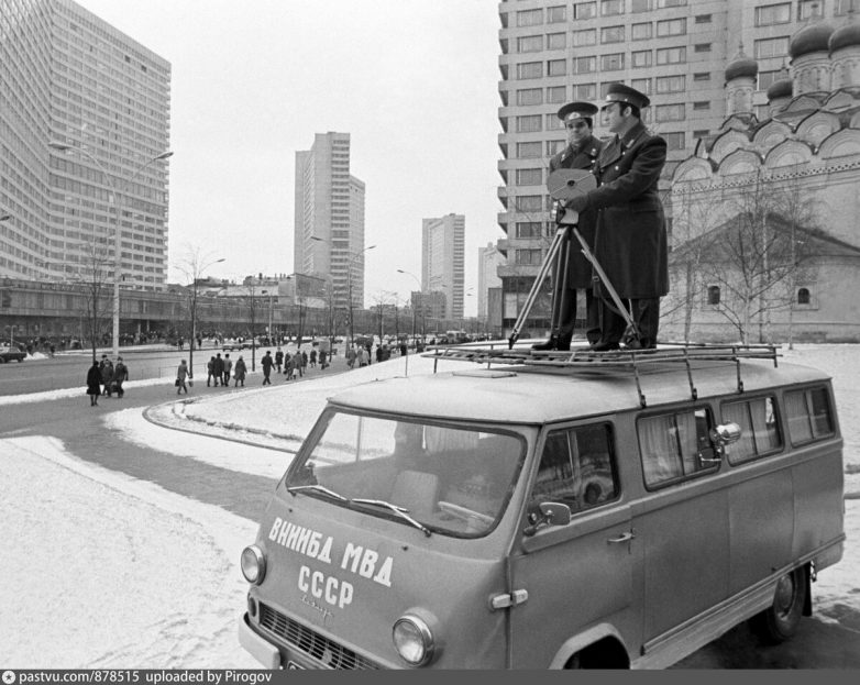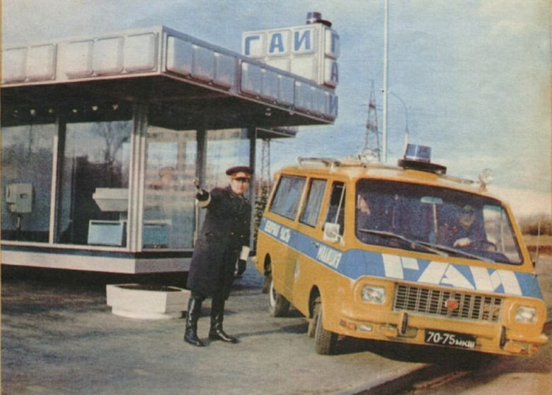 Очень постановочная, но всё-таки любопытная фотография. На посту ГАИ, что на Можайском шоссе.