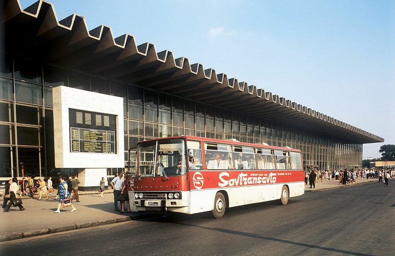 Красавец «Икарус» Совтрансавто на фоне Курского вокзала.