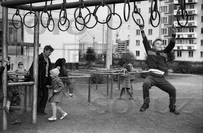 На первом фото пр… ка в трусах на фоне противогазов — горбачевская ш… ва, которой очень хотелось быть свободной и независимой. Найти бы ее сейчас. Наверное до сих пор в тех же трусах ходит, в своем капитализме. Остальные снимки — просто замечательные. Спасибо автор!