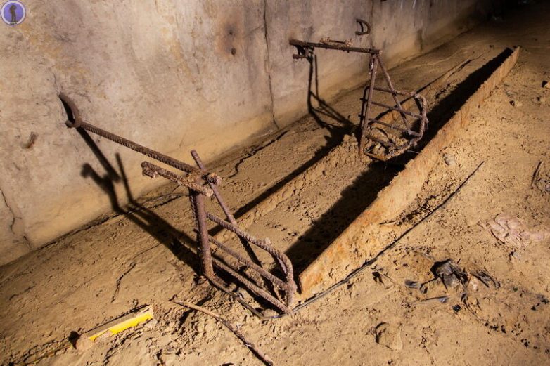 Из земли до сих пор торчит когда-то стоявшая на рельсах вагонетка.