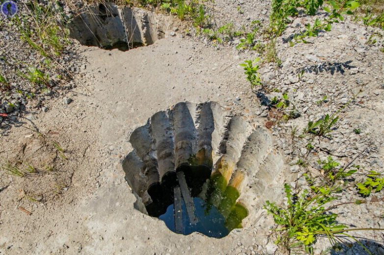 В который можно спуститься через торчащий рядом колодец.