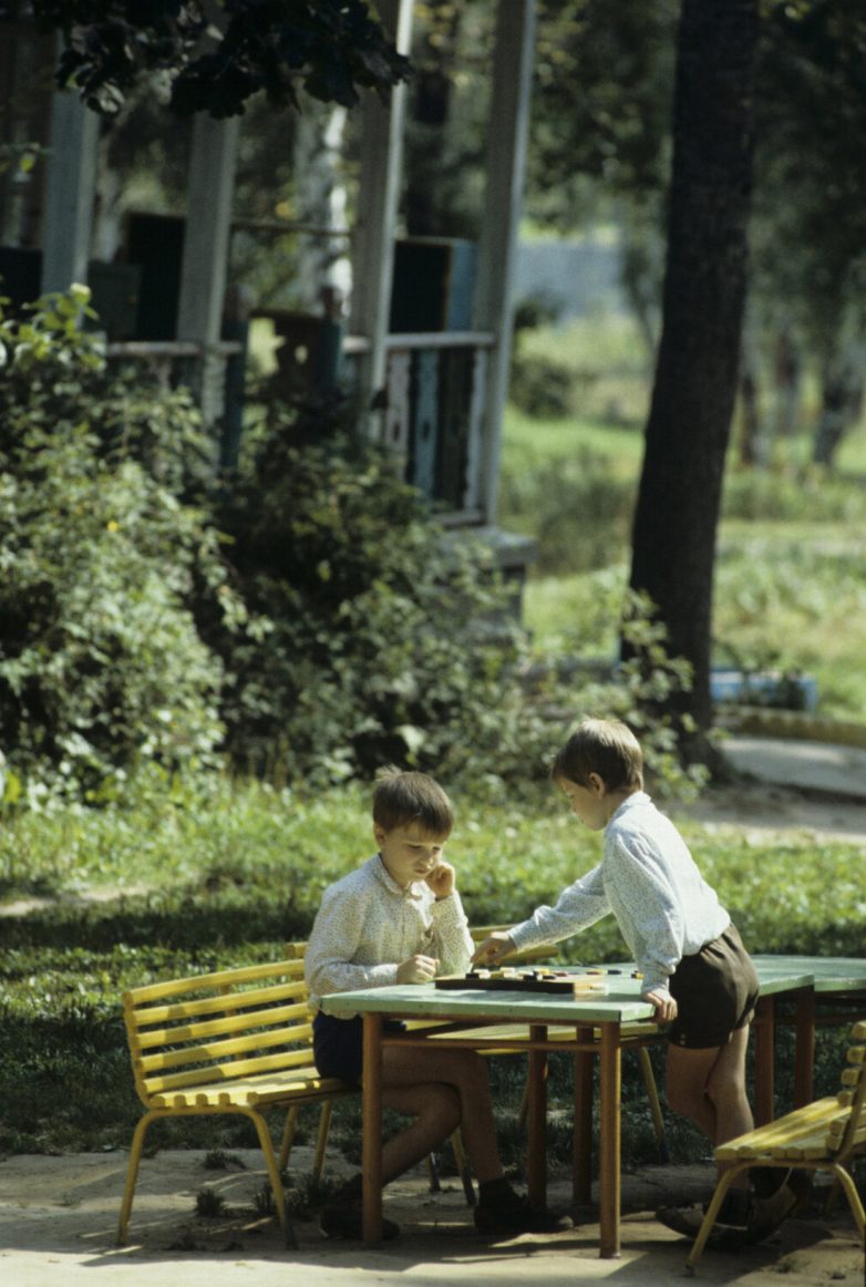 Мальчики играют в шашки в Чеховском районе Московской области, 1984 год