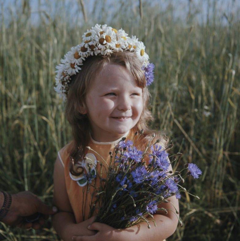 Девочка с букетом васильков в Ярославской области, 1975 год