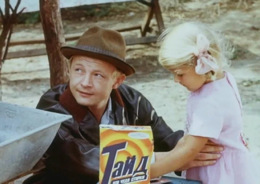 Фильм режиссера Виталия Мельникова «Здравствуй и прощай» заслуженно входит в Золотой фонд отечественного кино. Один из немногих советских фильмов, в котором не было приукрашивания быта и жизни сельских жителей. Фильм вызывает и смех, и слезы, и переживания за героев. Но интересно в нем другое… На 64 минуте фильма в нем мелькает упаковка стирального порошка «Тайд». Причем именно так — на русском языке. Было ли это рекламой продукции известной американской корпорации? Нет, конечно. Но откуда он тогда взялся?