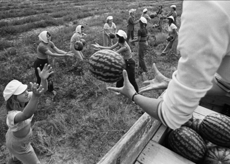 Сбор арбузов на полях колхоза Астраханской области, 1974 год