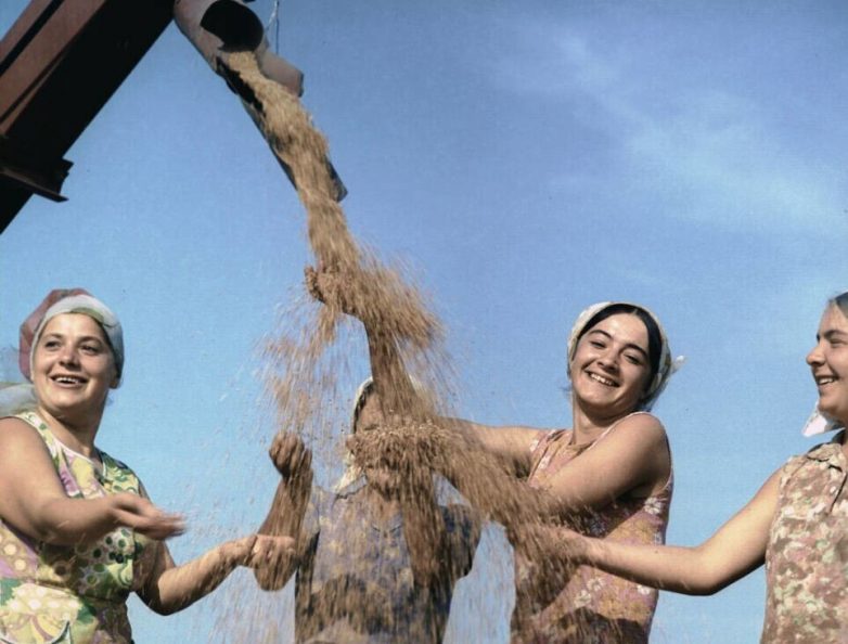 Работницы колхоза «Заря коммунизма» радуются новому урожаю пшеницы, 1972 год