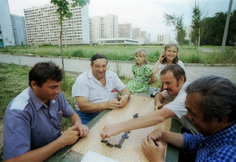 Жители района Солнцево рубятся в домино. Место действия — дворы на улице Щорса.
