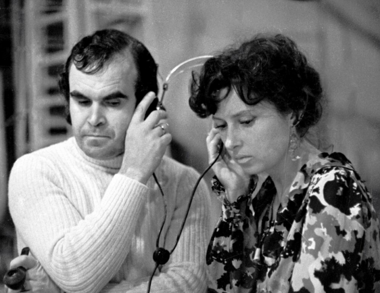 Режиссер Глеб Панфилов с ассистенткой прослушивают озвучивание фильма, 1977 год