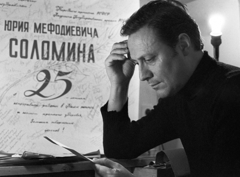 Юрий Соломин за чтением поздравлений по случаю 25-летия работы в театре, 1982 год
