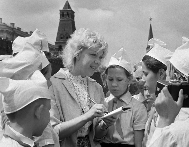 Советская актриса Тамара Носова на Красной площади среди пионеров, 1963 год