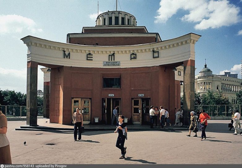 А так в те годы выглядела небольшая площадь перед вестибюлем станции метро «Арбатская».
