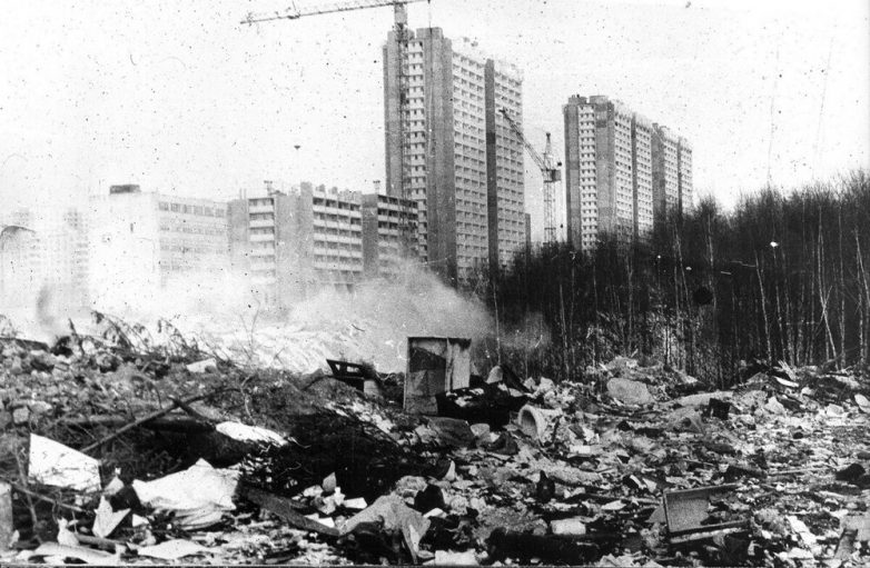 Свалка на фоне новых домов в Ясенево. Располагалась она между Тарусской и Ясногорской улицами.
