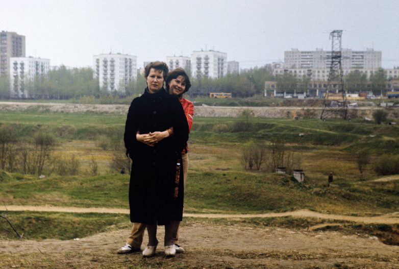 Перенесёмся в самые новые районы Москвы того времени: женская бригада на стройке 7-го микрорайона Тёплого Стана.