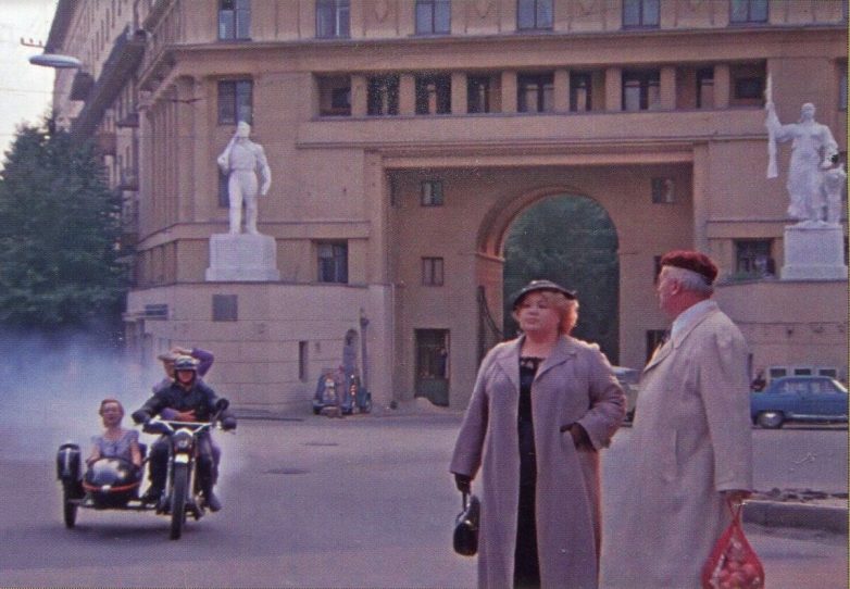 А таким тогда был знаменитый «Дом со скульптурами» на Яузском бульваре. Кадр из фильма «Покровские ворота».