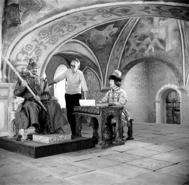 Издание «Коммерсант» со ссылкой на «Мосфильм» опубликовали редкие архивные кадры того, как снимался знаменитый советский фильм «Иван Васильевич меняет профессию». Полюбуемся легендой.