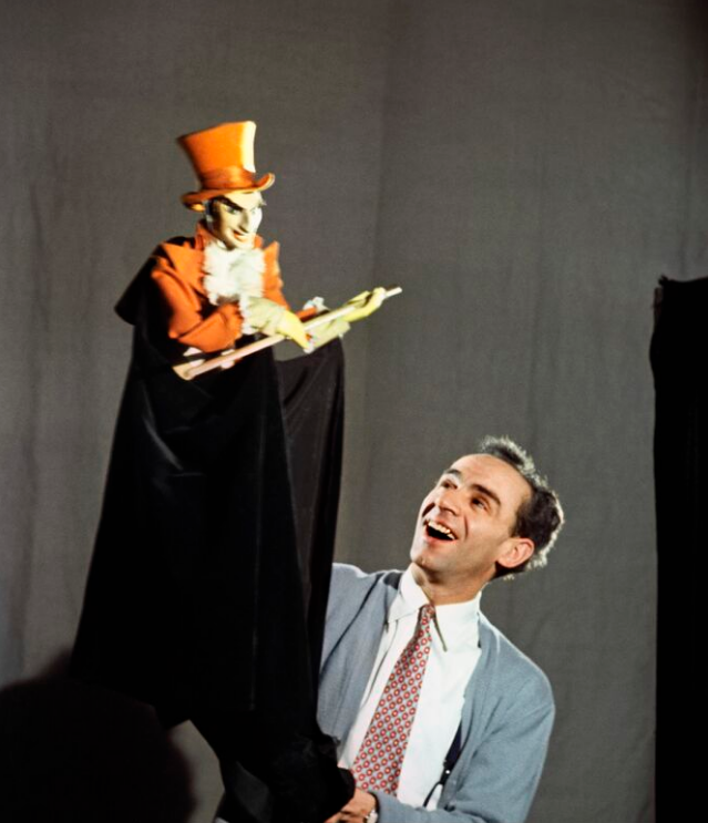 Актер театра и кино Зиновий Гердт в Центральном театре кукол. Москва, 1955 год