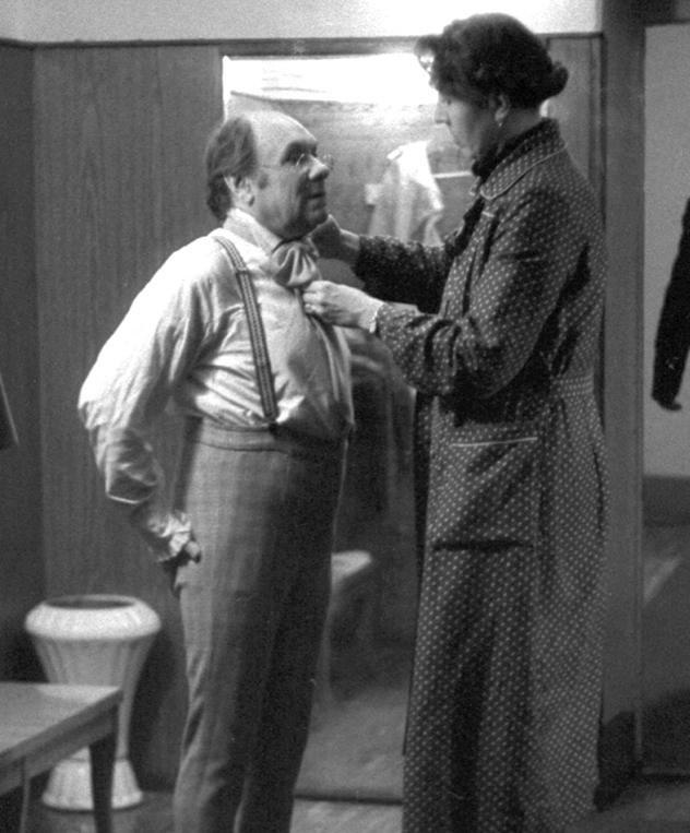 Николай Трофимов вместе с костюмером театра БДТ перед спектаклем «Пиквикский клуб», 1980-е годы
