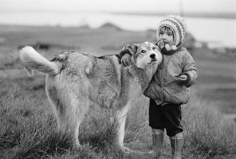 Мальчик и его друг в Оленегорском совхозе. Анатолий Кузярин