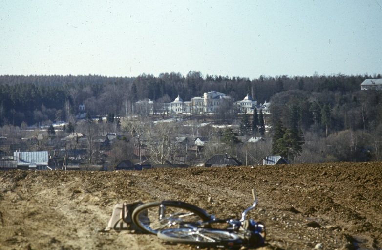 Вид на усадьбу Михайловское. Сейчас на том самом месте, откуда сделана фотография проходит трасса А-107 «Московское малое кольцо» или просто «бетонка».