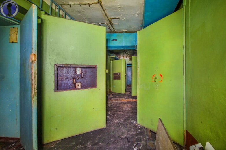 А вдоль главного коридора по обе стороны идут входы в помещения, защищённые толстенными сейфовыми дверями.