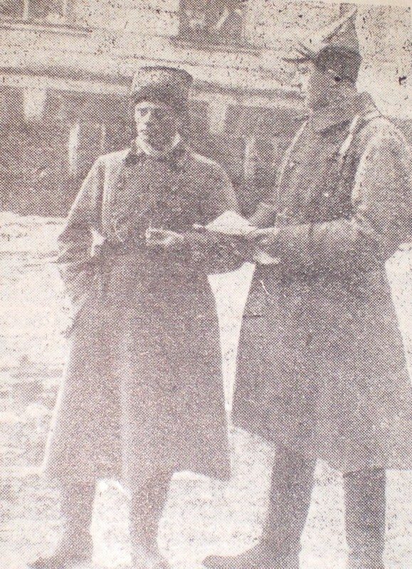 Красноармейцы в буденовках во время советско-финской войны, зима 1940 года.