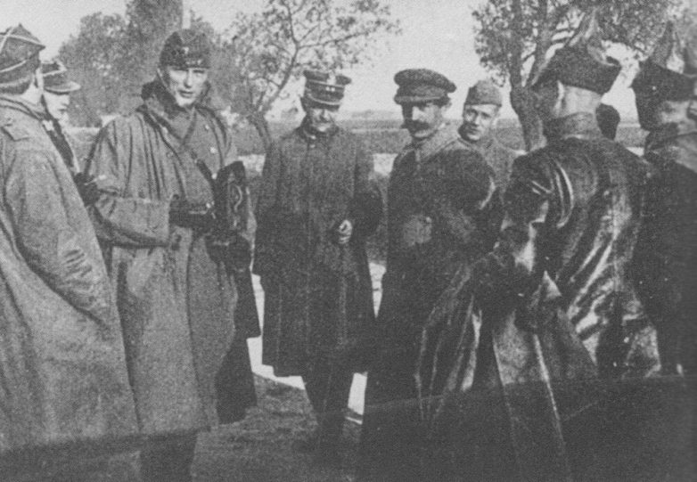 Делегация красного командования к полякам. Западный фронт, 1920 г. Поляки, конечно, одеты с иголочки. Вот и наши, видимо, не захотели уступать: чёрные кожаны плащи и шлемы.