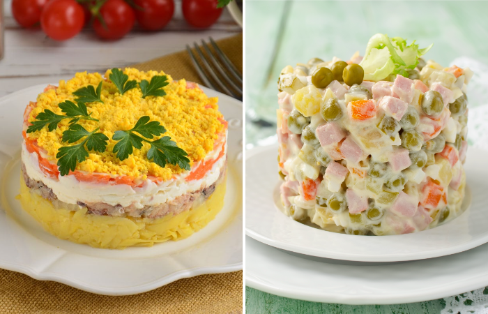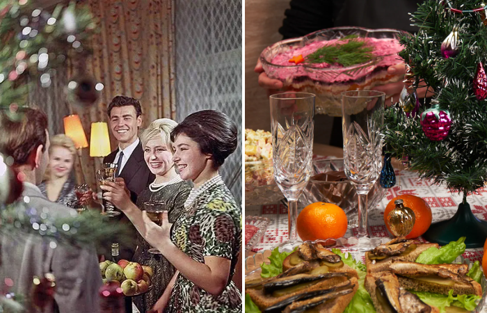 Когда до Нового года оставался один день, многие хозяйки начинали орудовать на кухне для того, чтобы успеть приготовить все самое вкусное. Многие заранее начинали готовить холодец, заливную рыбу и салат «Сельдь под шубой». Они делали это всё за день до праздника именно потому, чтобы все успело хорошенько пропитаться и было в разы вкуснее. К тому же, особое предпочтение советские люди отдавали салату «Мимоза» и «Еврейский». Не менее популярен в то время стал и салат «Оливье».