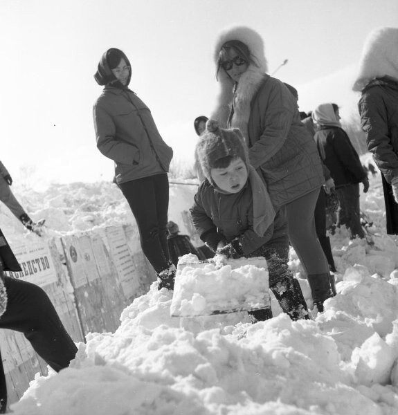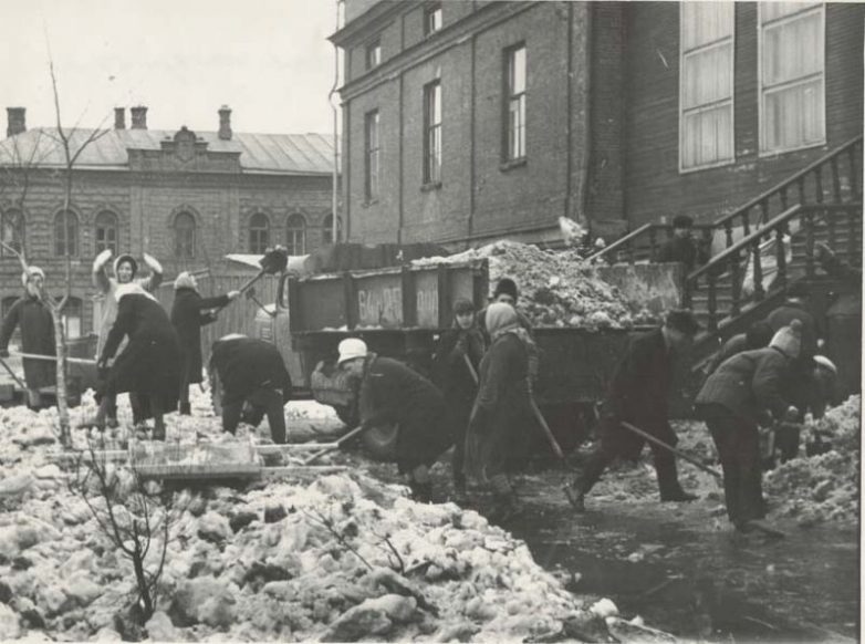 Уборка снега. 1979 год. Автор: Валентин Хухлаев.