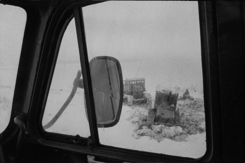Расчистка трассы строящейся автодороги от снега. Москва – Минск – Брест». 1982–1983 годы. Автор: Вадим Качан. Белорусская ССР, Минская область.