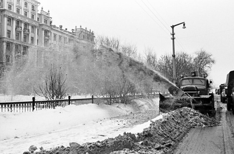 Уборка снега. 20 января 1960 года. Автор: Валентин Хухлаев. Москва.