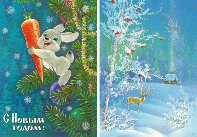 Оптимизм и сказочные герои — вот темы для Новогодних открыток в СССР.
