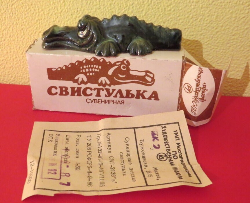 Вплоть до 60-х гг. производство свистулек в СССР сохраняло все особенности, характерные для этого промысла: изделия лепили и расписывали вручную, равно как и глиняную посуду, но только используя более простой и более мелкий орнамент. Скульптурная форма свистулек тоже всегда была обобщенной, хотя и конкретной — долгое время советские мастера старались придерживаться реализма: никаких фантастических птиц и животных, только узнаваемые, существующие в реальной природе фигурки: собака, конь, барашек, кошка, петух и т.д. И лишь в более позднее время стали появляться свистульки в виде Тяни-Толкая, птицы Сирин и пр.