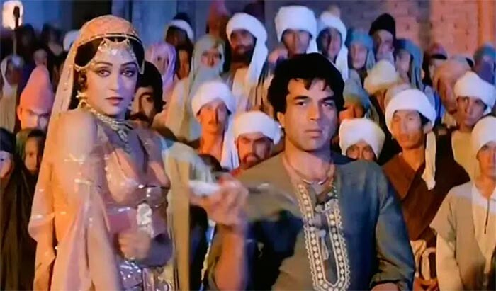 Али-Баба и Марджина ( Дхармендра и Хема Малини) — в жизни муж и жена.