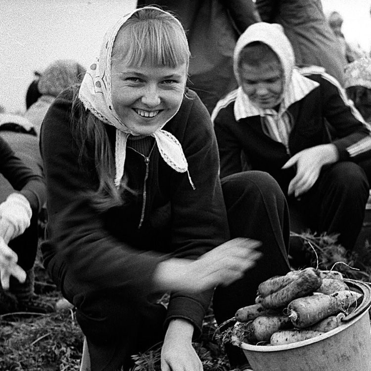 На уборке моркови, октябрь 1977 года, Челябинская обл., Сосновский р-н, совхоз «Митрофановский»