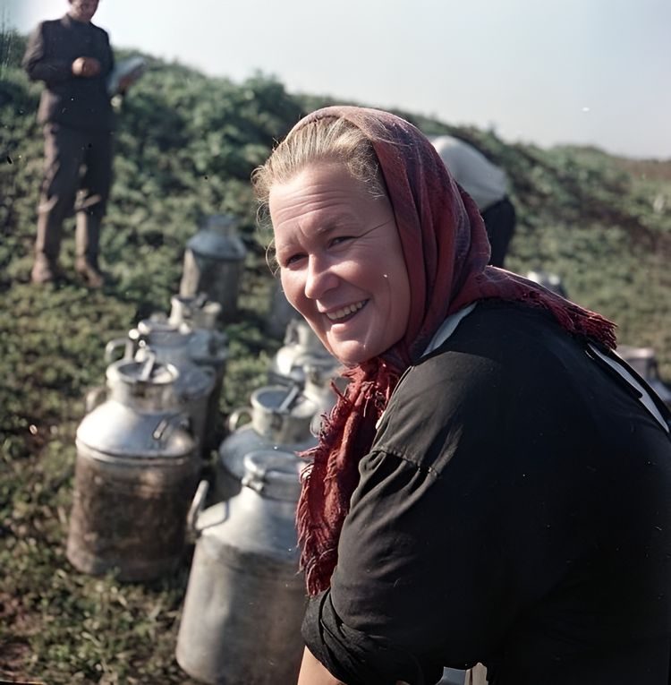 Лучшая доярка 1-й фермы колхоза «Кавказ» Капитолина Алексеева, 1957 год, Краснодарский край, Курганинский р-н