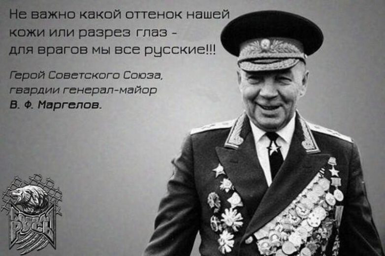 Как верно сказал Дядя Вася! Как здорово, что автор это вспомнил, но почему в самом конце этой темы? Замечательнейшие и пророческие слова! Это надо было вынести в заголовок! «Не важно какой оттенок нашей кожи или разрез глаз — для врагов мы все русские!!!» Как жаль, что некоторые современные политические проститу… (простите) деятели этого не понимают и пытаются продаться пиндocтану также, как продались украинцы. Неужели Армяне или Киргизы не понимают, что для пиндocoв или саксов они как были, так и остаются Русскими… жаль, очень жаль что нет уже в живых Василия Филипповича, я думаю, был бы он жив сейчас, мало бы не показалось ни внешним врагам, ни внутренним! Внутренним — в первую очередь!!!
