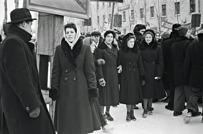 Раньше, в те времена, когда женщины вынуждены были работать на морозе, умным решением было — закрывать голову платком, а затем аккуратно обвязывали его вокруг торса и талии, чтобы сохранить тепло и защититься от мороза. Спустя некоторое время, в семидесятых, брюки наконец-то стали неотъемлемой частью гapдepоба. Раньше это было привилегией лишь женщин, работавших напримep, машинистками строительных кранов, которым разрешалось носить их в рамках рабочей одежды. В остальных случаях, зимой женщины надевали шерстяные рейтузы под юбки, которые носили специально зимой и были теплыми. Также носились плотные чулки и порой по несколько пар. Однако случалось и так, что приходилось мёрзнуть в капроновых колготках. Тогда текстильные фабрики не предлагали большого выбора готовой вещей, поэтому многие женщины вынуждены были самостоятельно шить пальто, опираясь на образцы из редких журналов, кино.