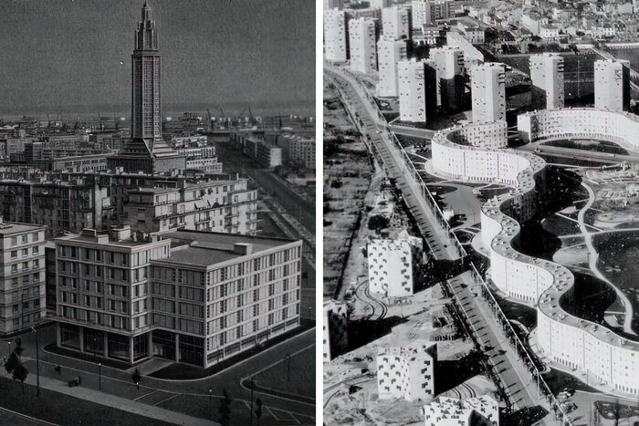 Кстати, идея хрущевок Хрущеву не принадлежала. В 1959 году советская делегация, в числе которой были специалисты в области строительства и сам Хрущёв, посетила Гавр и осмотрела панельные дома. С французами был подписан контракт на поставку в СССР линии по производству панелей, была куплена лицензия на систему по массовому производству железобетонных изделий, которая была переработана советскими инженерами. По сравнению с французскими домами хрущёвки были упрощены до крайности.