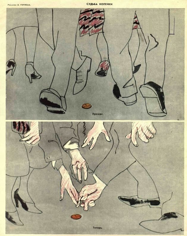 Рисунок Виталия Горяева. Судьба копейки. Прежде. Теперь. 1961