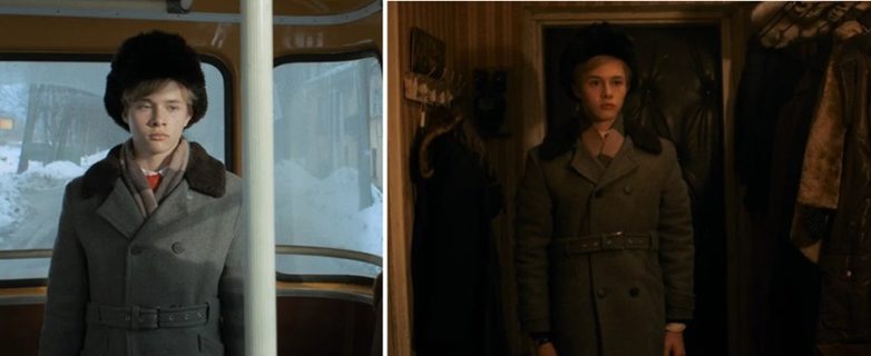Пальто мы шили с нуля из новой шерстяной ткани, а вот оригинальный советский воротник я купила на «Авито». Учитывая занятость актера Леона Кемстача, мы собрали этот образ очень быстро, буквально за три дня.
