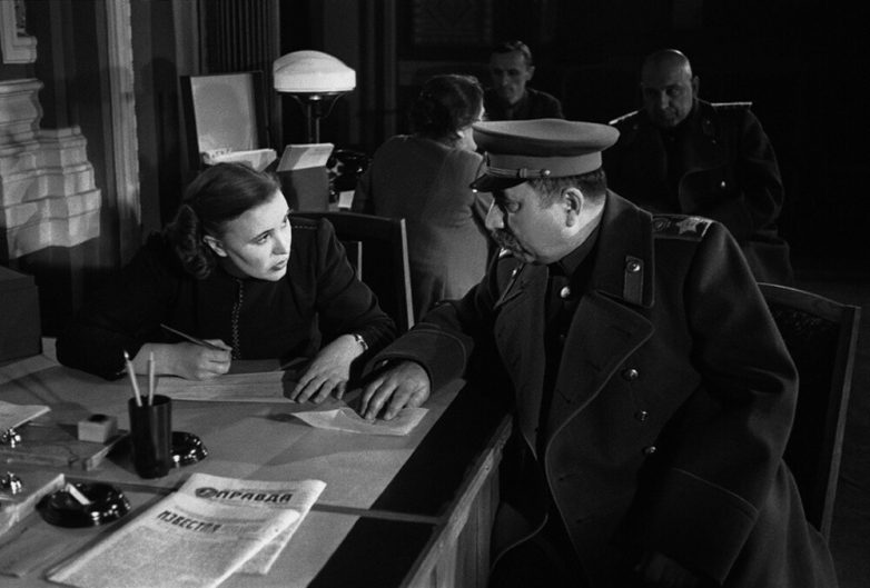 Первый слева – Сергей Герасимов, третья слева – Марина Ладынина, четвертый – Сергей Юткевич, третья справа – Галина Водяницкая. Автор: Евгений Халдей.