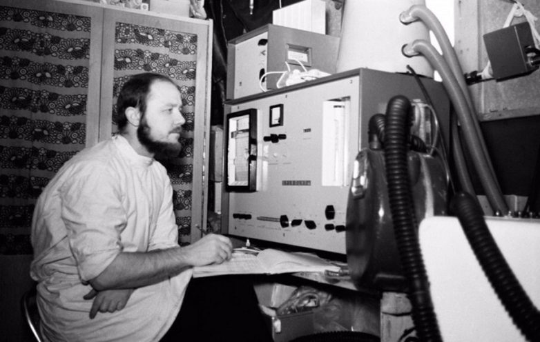 Военный врач и будущий ведущий телепередачи «Клуб кинопутешествий» Юрий Сенкевич на полярной станции в Антарктиде, 1967 год