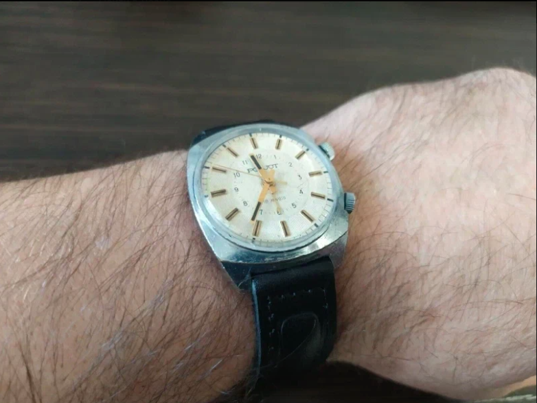 Выпускать эту модель начали на Первом Московском часовом заводе еще в шестидесятые — под маркой «Сигнал».