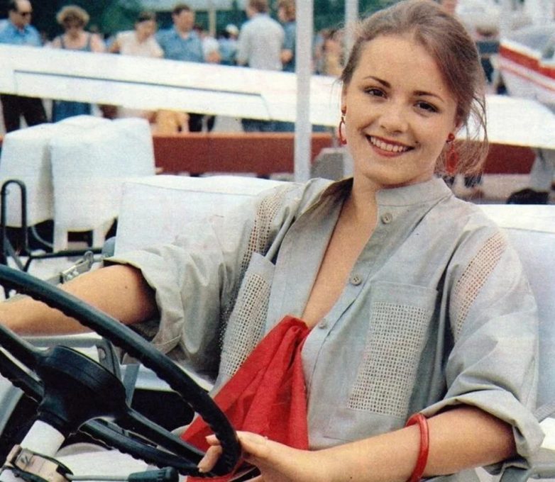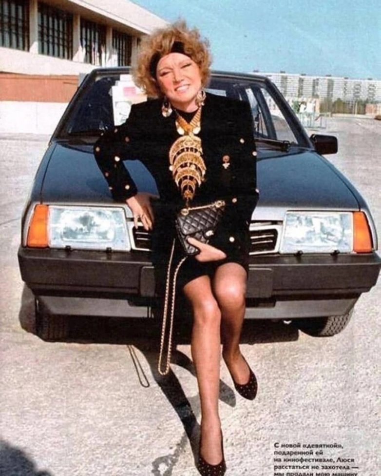 Людмила Гypчeнко и aвтомобиль BAЗ-2109 подapeнный ей на кинофестивале. СCCP, 1980-е.