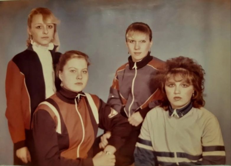 Опять же стоит учитывать и то, что к концу 80-х годов, то есть когда по полной программе развернул свою деятельность Горбачев, население стремительно скатывалось в нищету. Для групповой фотографии девушки стремились надеть что-то ценное, а хороший спортивный костюм в ту пору стоил денег.