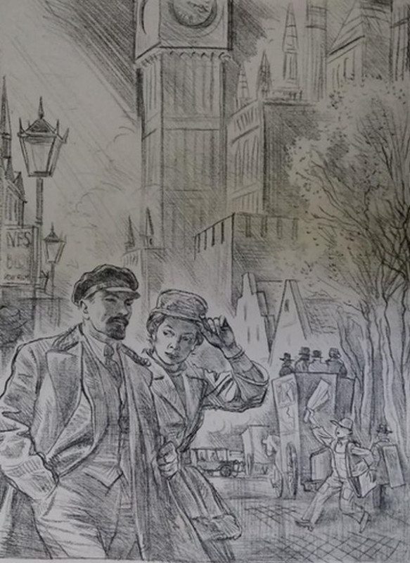 М.М. Герасимов. В.И. Ленин и Н.К. Крупская в Лондоне. 1980