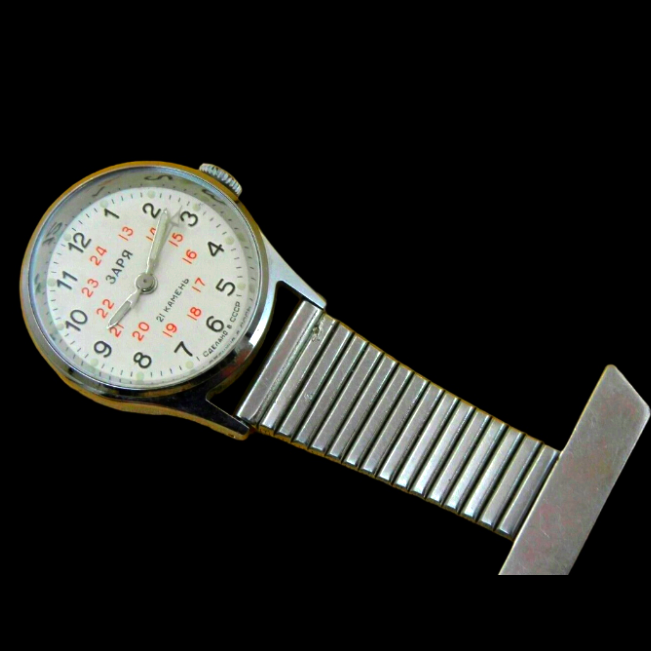 Так а при чем тут заря? Браслет съемный, кто-то на коленке собрал на браслете крепление, самоделка же видно и когда крепежную пластинку заклепывали у браслета эту планку на лицевой стороне покоцали, все видно же. Это так можно любые часы повесить и сказать, что это для врачей.