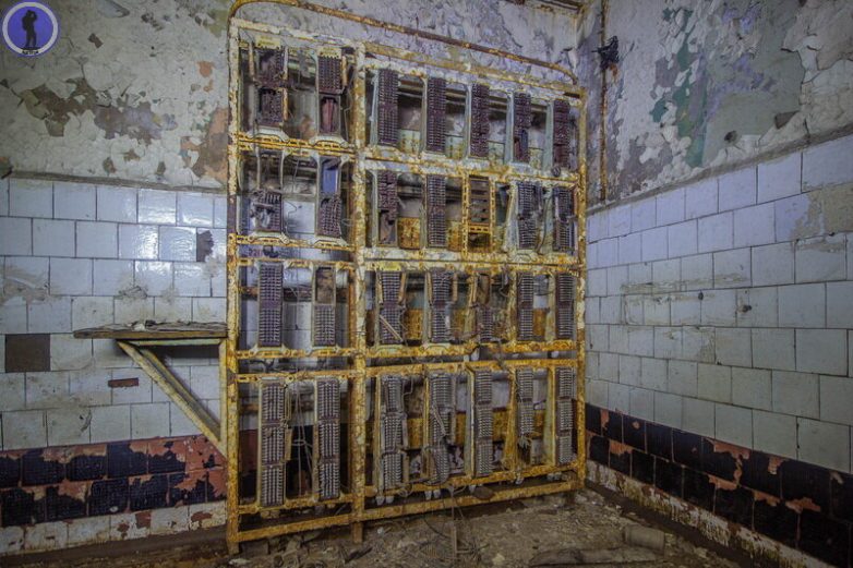 Здесь осталось несколько пустых стоек от АТС.