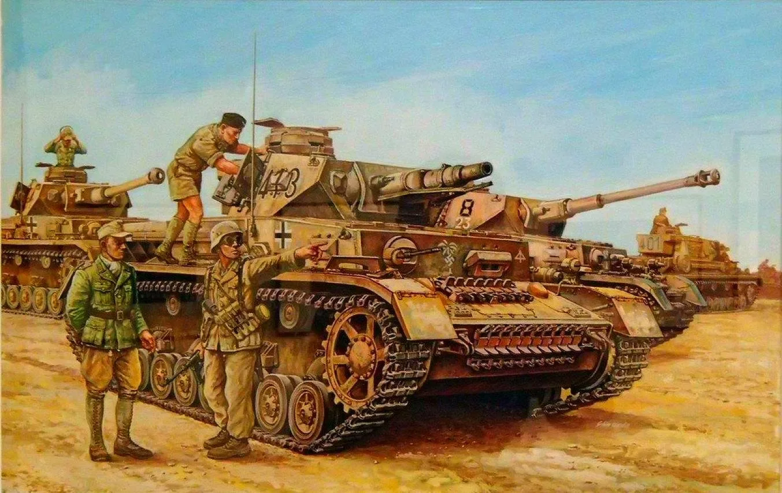 Ну а в пустынной северной Африке гитлеровцы свои боевые машины красили, ожидаемо, вообще в желто-коричневый (gelbbraun) или же желто-зеленый (graugrün) цвета с оливковыми полосами.