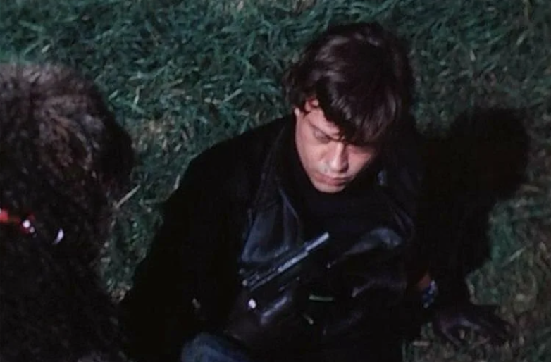 Кстати, во время съемок этой сцены произошел действительно забавный момент. Для данной сцены было заготовлено два пластмассовых пистолета. Один из них был целым, а второй с заранее отпиленным стволом. Но в итоге собака так сильно вжилась в роль, что действительно откусила ствол у первого пистолета, поэтому второй даже не понадобился.